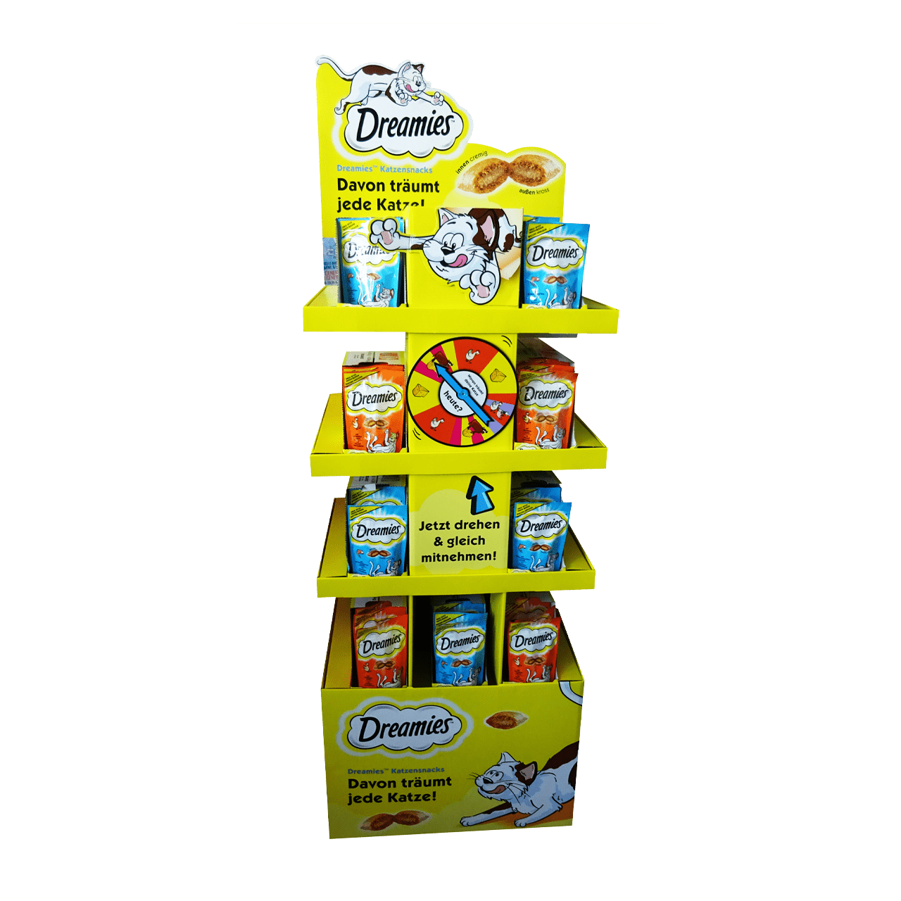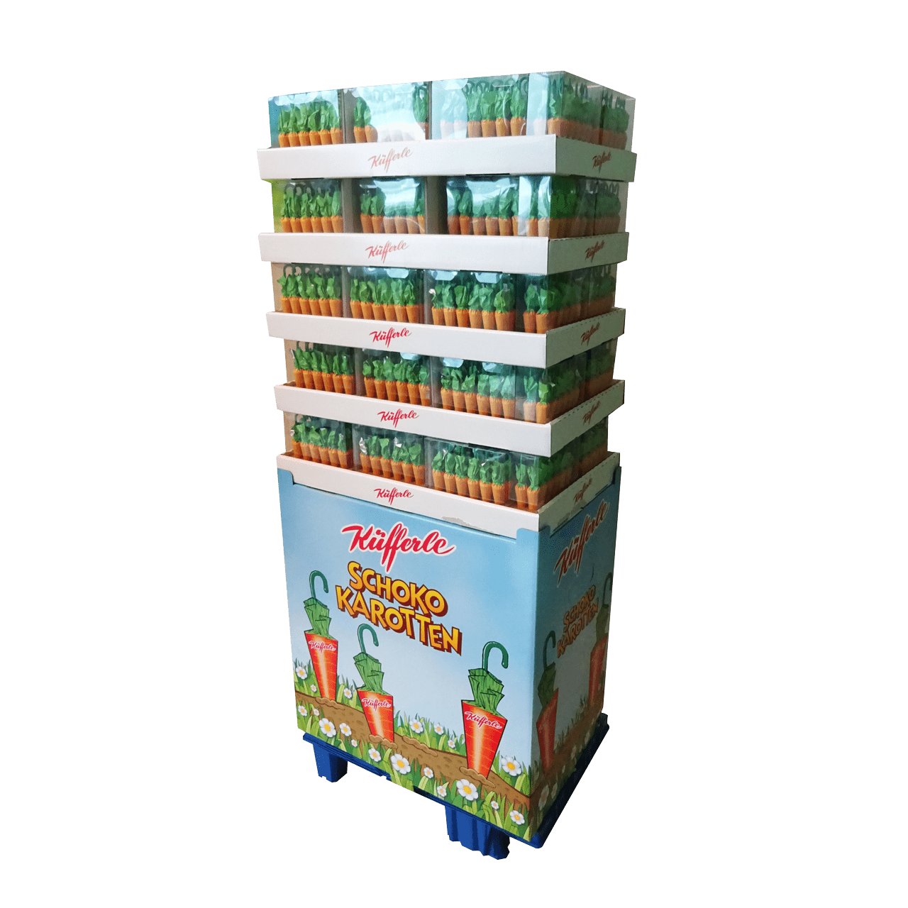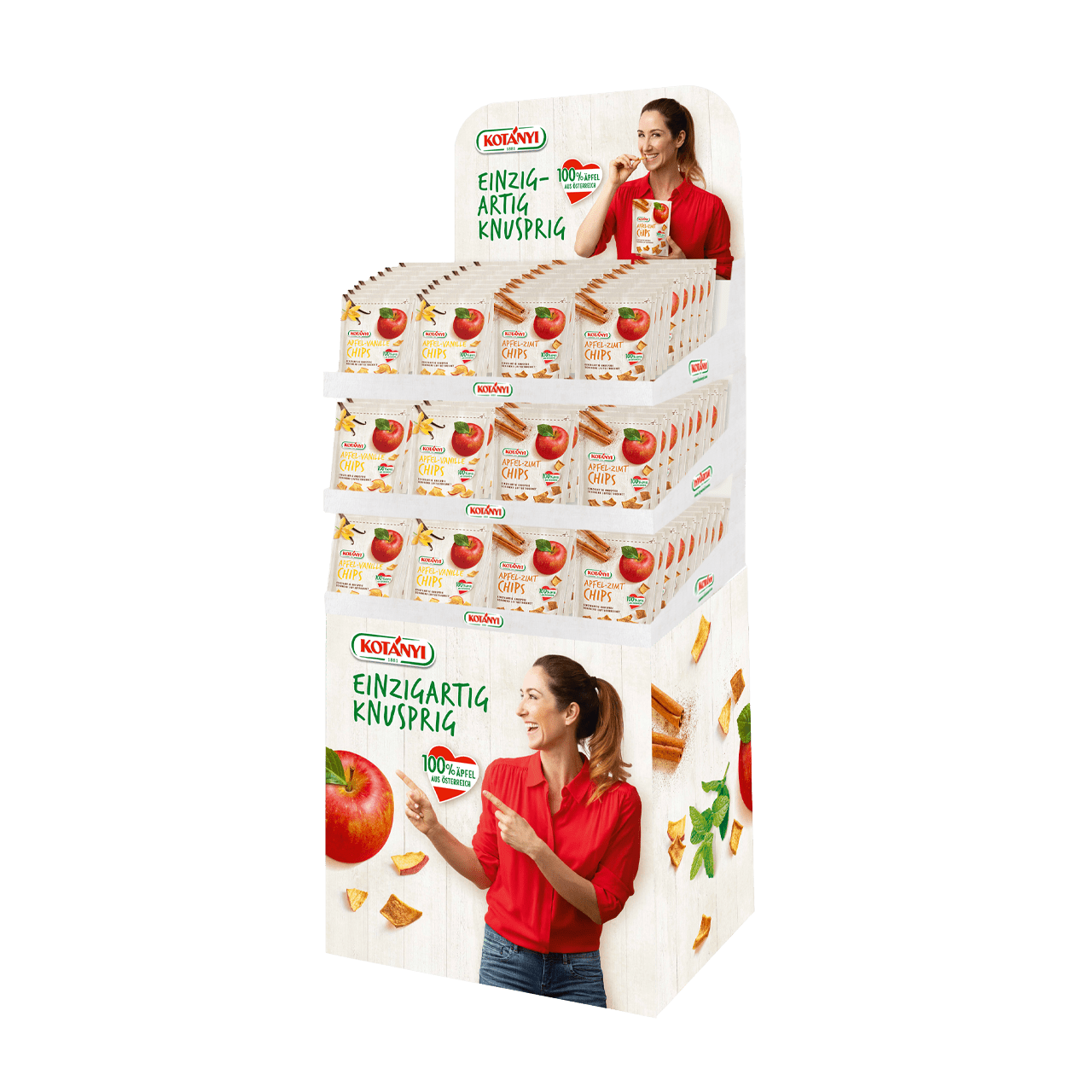Dank der intelligenten Anordnung auf mehreren Ebenen ermöglicht das Display eine hohe Warendichte, sodass viele Produkte auf kleinem Raum ansprechend präsentiert werden können. Die klar strukturierte Darstellung fördert nicht nur den Überblick, sondern unterstützt auch Impulskäufe direkt vor Ort – ein wichtiger Faktor für den Erfolg am POS.