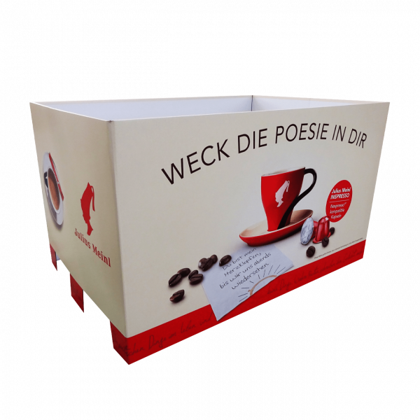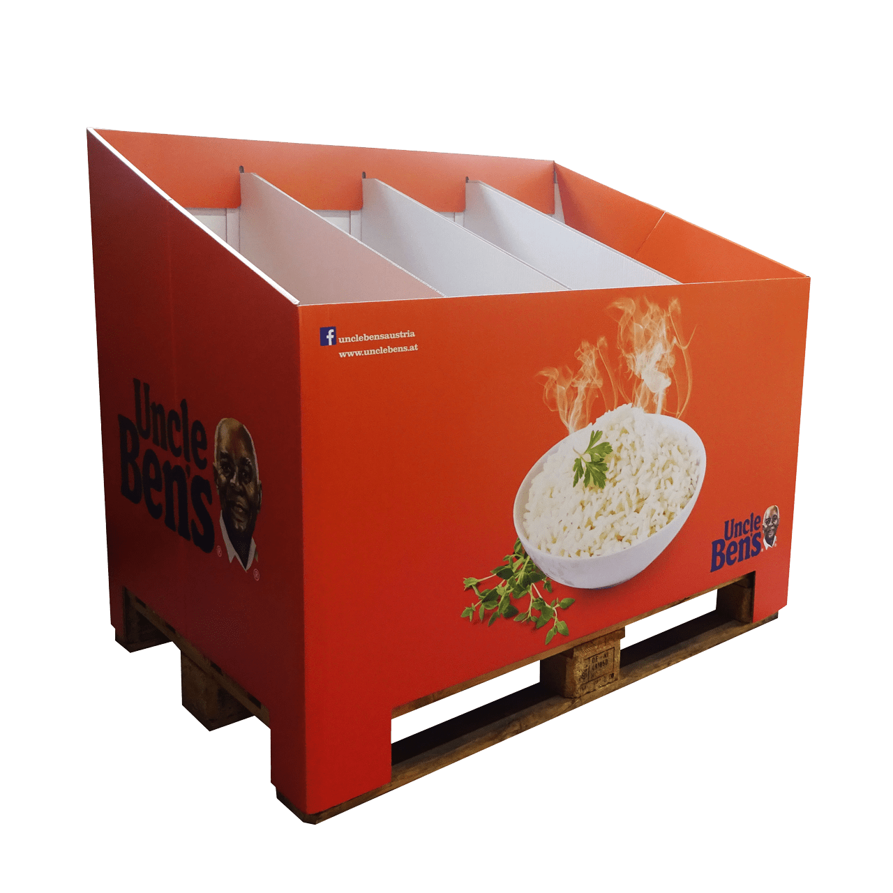 Paletten Ummantelungen umfassen ihre Produkte auf der Palette und haben so eine riesige Fläche zur Beschreibung und Präsentation. Sie können einen LKW gestalten, eine Burg darauf abbilden, viele, viele kreative Ideen haben hier genug Raum um verwirklicht zu werden. Fordern Sie uns-wir sind für sie da und konstruieren eine werbewirksame und kreative Lösung.